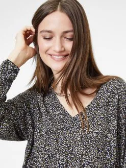 MOSS COPENHAGEN Midi Jurken Jurk Kalika Jalina Dames Navy / Smoky Blue